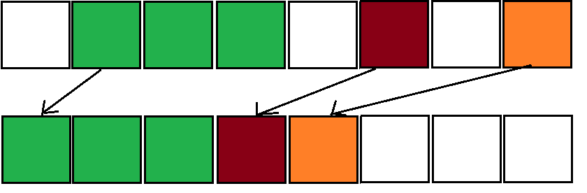 Sliding - 힙에서 원래의 순서를 유지하며 할당 된 순서대로 정렬됩니다. (가장 빠른 compaction 알고리즘이고 많이 사용)