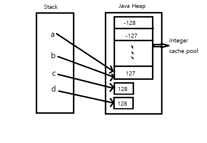 다음 그림을 참고하여 Integer 값에 대한 주소 비교를 쉽게 확인 할 수 있다.