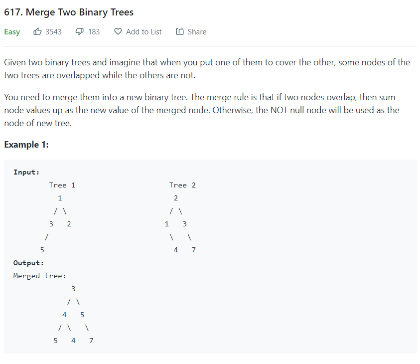 public TreeNode mergeTrees(TreeNode t1, TreeNode t2) {