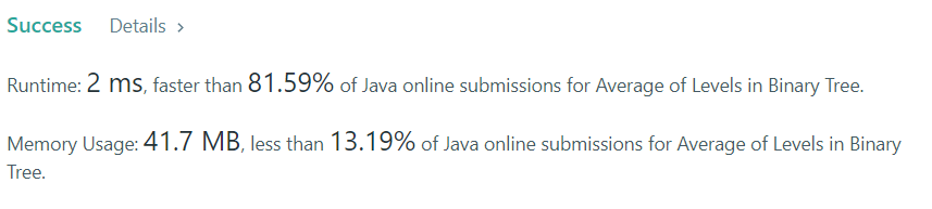 LinkedList를 통해 bfs로 해결이 가능하다. 처음 root를 추가하고, 이후에 추가되는 queue의 갯수에 따라서 size가 정해진다. 다시 while문을 내부에 돌려 size만큼 있는 val들을 더해주고 size로 나눠준다.