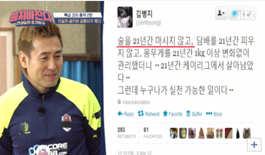 김병지 골키퍼는 어떻게 21년간 1kg이상 변화없이 관리가 가능한지 참으로 존경스럽습니다