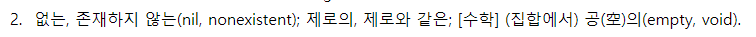 여기서부터 조금 헷갈리기 시작합니다. 그래서 사전을 찾아보게 되었습니다. 설명을 본다면 [] 안에 그릇, 차, 배, 승객 등등 다양한 예시가 나옵니다. 그말은, 껍데기는 있지만 그 안에가 아무것도 들어있는게 없이 비어있다는 뜻입니다. null은 껍데기도 뭐도 정말 아무것도 없는 無인 것에 비해 조금 낫습니다. 따라서 ""는 empty입니다. 대신 껍데기만 있기 때문에 길이는 0이어야 합니다!