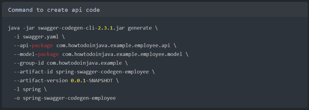 아래의 예시는 한 사이트의 튜토리얼을 가져온 것으로 Swagger Codegen의 실행흐름을 확인한다.
