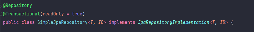 CrudRepository의 기본 구현체이다. EntityManager 필드를 사용하여 실제로 데이터 영속성을 다룬다. 모든 저장소에 적용되는 공통 메서드를 추가하고 싶으면 해당 클래스를 상속하여 메서드를 구현할 수 있다.