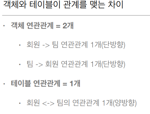 - 객체와 테이블 연관관계의 차이를 이해한다.