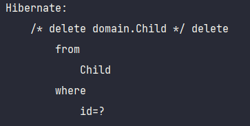 부모가 삭제되지 않았지만, child 엔티티는 고아가 되었으므로 테이블에서 삭제됩니다.