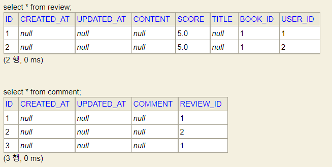 Review(super=BaseEntity(createdAt=null, updatedAt=null), id=2, title=null, content=null, score=5.0, comments=[Comment(super=BaseEntity(createdAt=null, updatedAt=null), id=2, comment=null)])