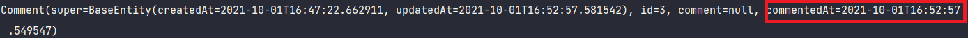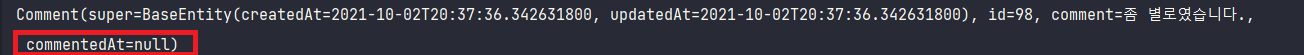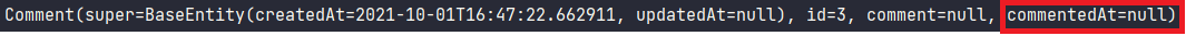 따라서 findAll()로 조회하면 DB에 저장되있던 값을 영속성 컨텍스트로 조회해오기 떄문에 저장된 commentedAt이 조회된다.