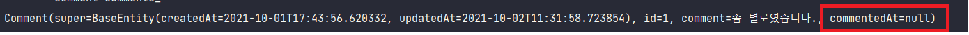 따라서 findAll()로 조회하면 DB에 저장되있던 값을 영속성 컨텍스트로 조회해오기 떄문에 저장된 commentedAt이 조회된다.