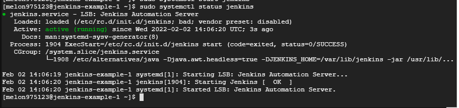 jenkins가 정상적으로 설치되었다면 Active에 active(running)이 표시됩니다.
