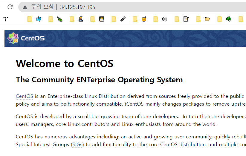 현재 CentOS에서 웹서버에 접속할 수 없는 오류가 나타납니다. 아래의 명령어로 해결합니다.