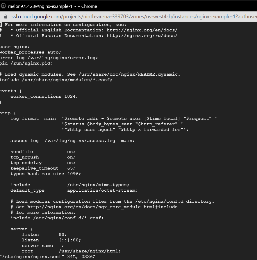 아래와 같이 nginx 설정 내용이 나옵니다.