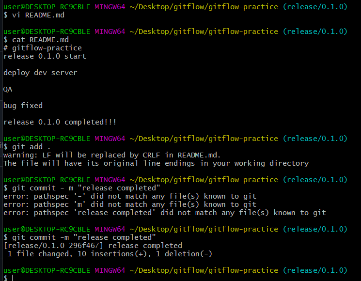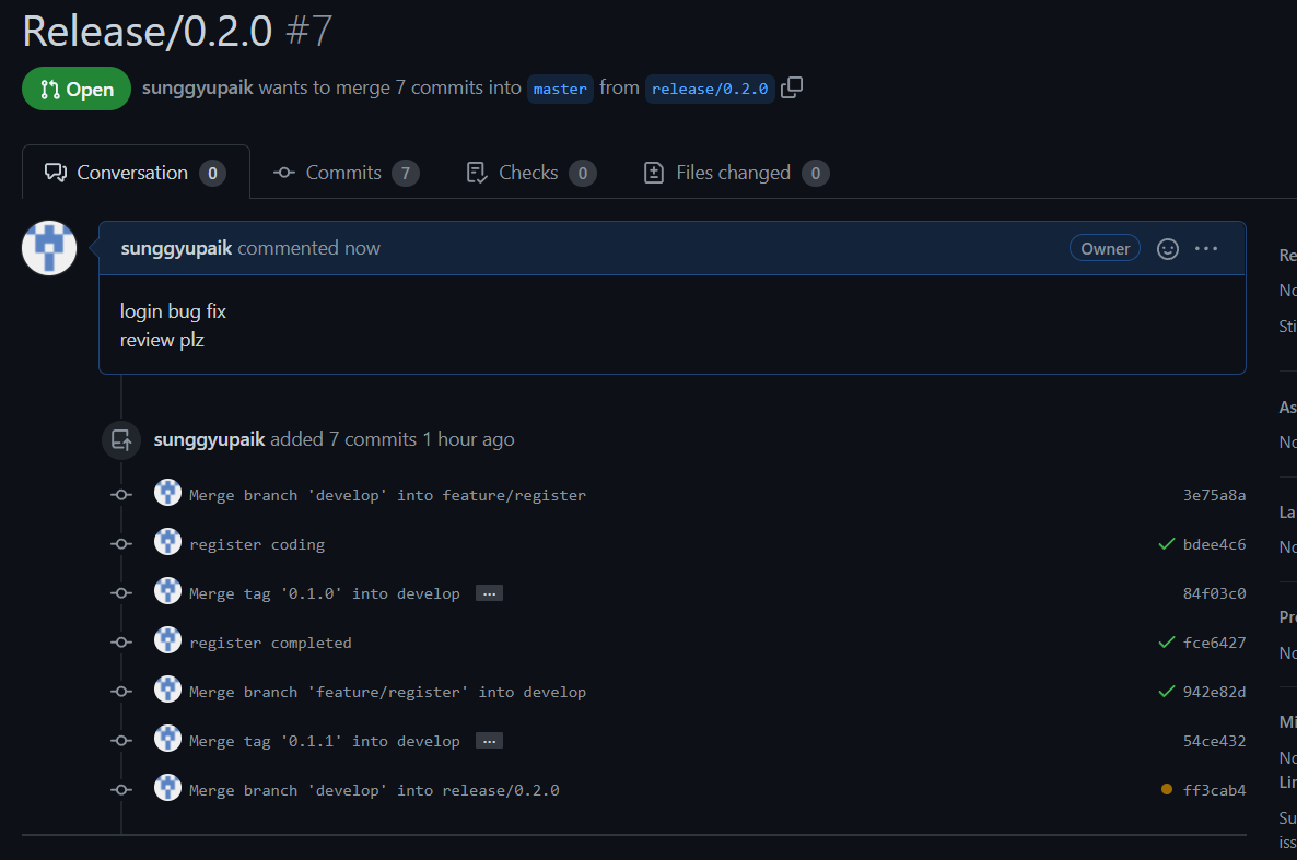 pull request로 코드리뷰를 받았으니 local repository에서 release를 종료합니다