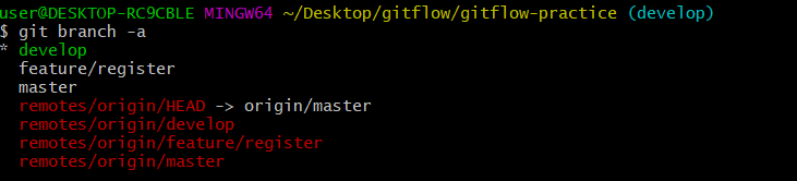branch가 삭제되었으니, local repository에서 feature register를 끝냅니다.
