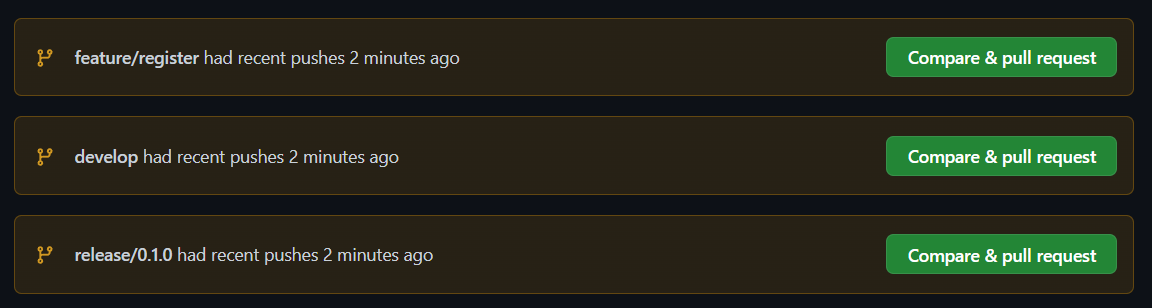 origin repository에는 다음과 같이 pull request를 안내하는 알림이 뜹니다.