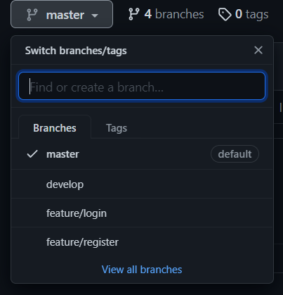 이제 본격적으로 기능구현을 시작합니다. 기능구현은 feature를 사용합니다. login 기능을 만들예정이므로 아래와 같이 시작합니다. 이제 branch는 master, develop뿐만 아니라 feature/login이 추가되었습니다.