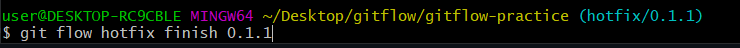 모든 코드리뷰가 끝났다면, 다시 local repository로 돌어와서 hotfix를 끝냅니다.