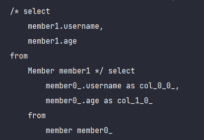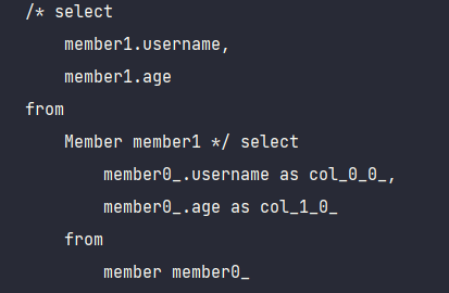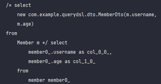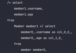 JPQL도 username, age를 가져오고 쿼리도 마찬가지입니다.