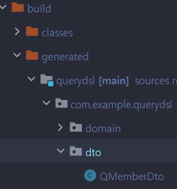 Gradle - other - compileQuerydsl을 누릅니다. 그러면 MemberDto도 QMemberDto 파일이 생성됩니다.