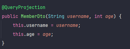 MemberDto 클래스에서 매개변수가 있는 생성자에 @QueryProjection을 추가합니다