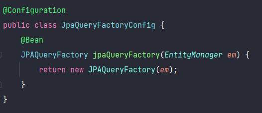 JPAQueryFactory가 Bean으로 등록되어 생성자에서 빈 주입을 받아서 사용할 수 있습니다.