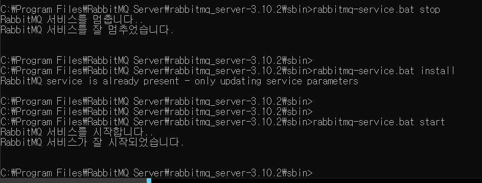 rabiitmq를 종료시키고 설치후 다시 시작합니다.
