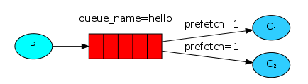 이를 해결하기 위해서는 basicQos의 prefetchCount를 1로 설정합니다. 이를 통해 RabbitMQ가 한번에 1개의 메세지만 보내도록 제한합니다. 즉, 하나의 일이 끝나고 ack를 받기 전까지는 새로운 메세지를 보내지 않습니다. 대신에, 그 시간에 작업을 하지 않는 다른 작업자에게 메세지를 전송합니다.