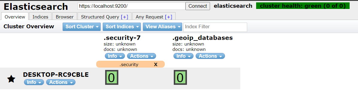 chrome의 elastic-head를 설치하고, 내가 만든 elasticsearch 도메인 주소와 기본 포트번호 9200로 접속합니다.