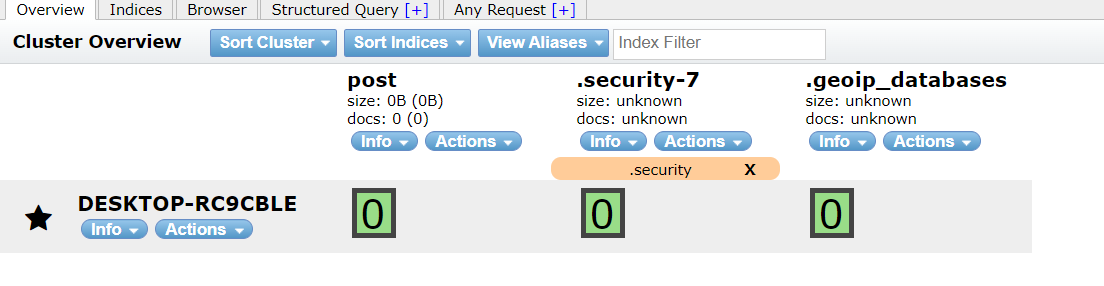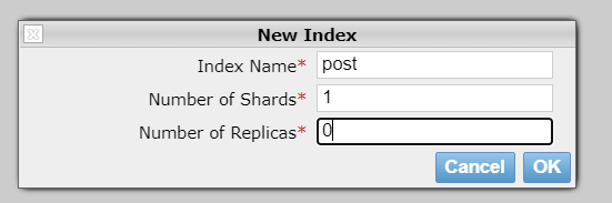 Indices로 이동해서 shard 1개, replica가 0개를 먼저 생성합니다.