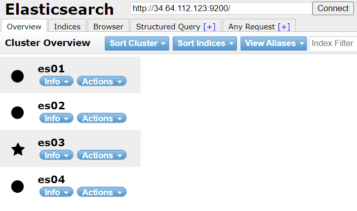 그와중에 1번 instance의 외부 ip로 ES head에 접속합니다.