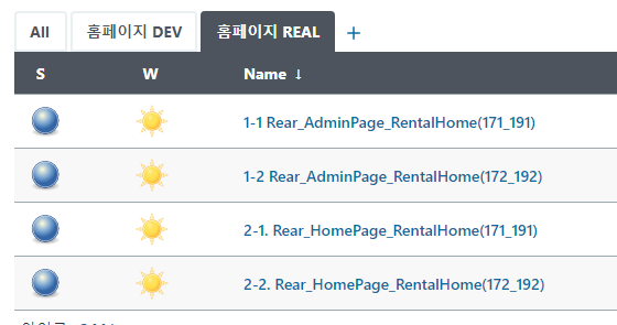 각 프로젝트들이 이중화가 되어있어 총 4대의 서버입니다. front, admin 2개만 item을 만들어도 되지만, 안전하게 각각 배포 적용하기 위해서 개별적으로 모두 item으로 만들었습니다.