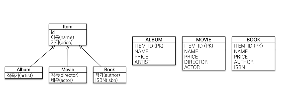 3. 서브타입 테이블로 변환 (구현 클래스마다 테이블 전략)