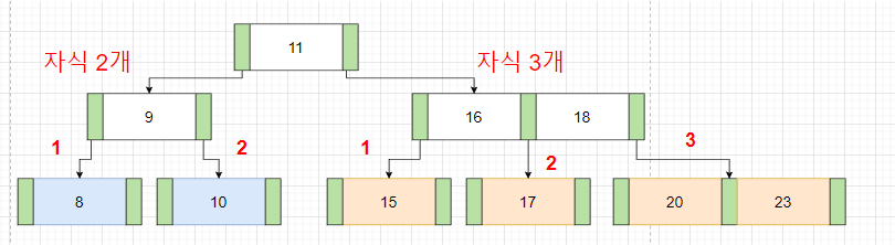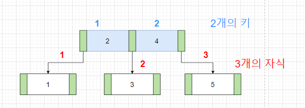 하나의 노드의 최대 자식수가 3개이면 3차 B-tree, 4개이면 4차 B-tree라고 합니다.