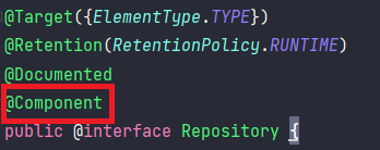 전통적인 Java EE 패턴(DAO)를 구현하는 팀은 @Repository를 DAO 클래스로 활용할 수 있는데, DAO와 DDD 스타일 저장소의 차이를 이해하고 사용하도록 주의해야 합니다. 이 어노테이션은 개인이나 팀이 의미를 좁혀서 적절하게 사용하도록 권장하고 있습니다.
