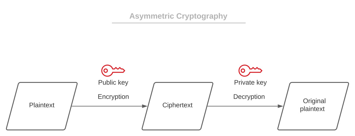 비대칭 암호화는 대칭 암호화의 2가지 문제를 해결합니다. 첫째로, 데이터를 복호화하는 개인키는 아무곳에나 전달되지 않습니다. 수신인만 개인키를 가지고 있으며, 보안을 책임질 유일한 대상입니다.