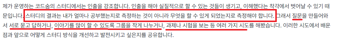 인출 위주의 스터디를 통해 내가 알고 모르는 것을 정확하게 알 수 있습니다.