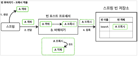 일반적으로 스프링 컨테이너가 컴포넌트 스캔으로 등록하는 모든 빈을 중간에 조작할 수 있습니다. 바꿔 말해서빈 객체를 프록시로 교체하는 것도 가능하며 스프링 AOP의 적용방식입니다.