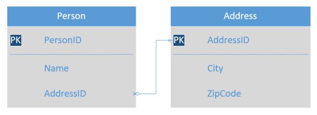 첫 번째로, Address 테이블이 식별자를 가집니다. 두 번째로, value object와 entity가 분리됩니다. Address는 동등성을 가지는 value object임에도 불구하고 Person entity에 속하지 않고 독립적으로 존재합니다.