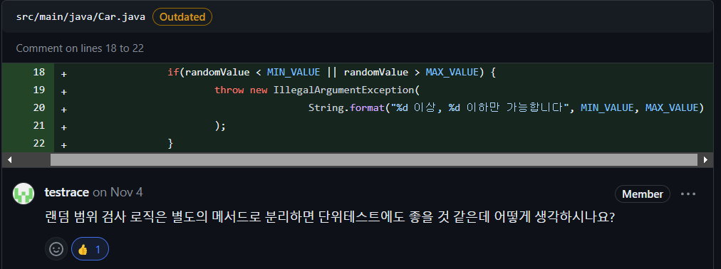 문자열 계산기와 자동차 경주 과제 구현 및 피드백을 회고한다.