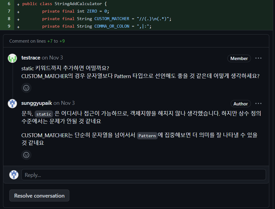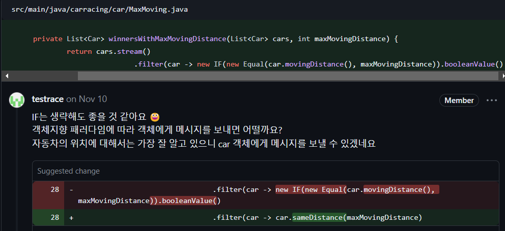기존에 비교에서 다양한 선언형 방식을 사용하였기 때문에 선연형 방식 사용을 제안해 주셨습니다. 해당 부분도 충분히 사용할 수 있는 곳이지만, 이전에도 이미 여러 번 적용했던 부분이라 굳이 추가하지 않았던 부분입니다.