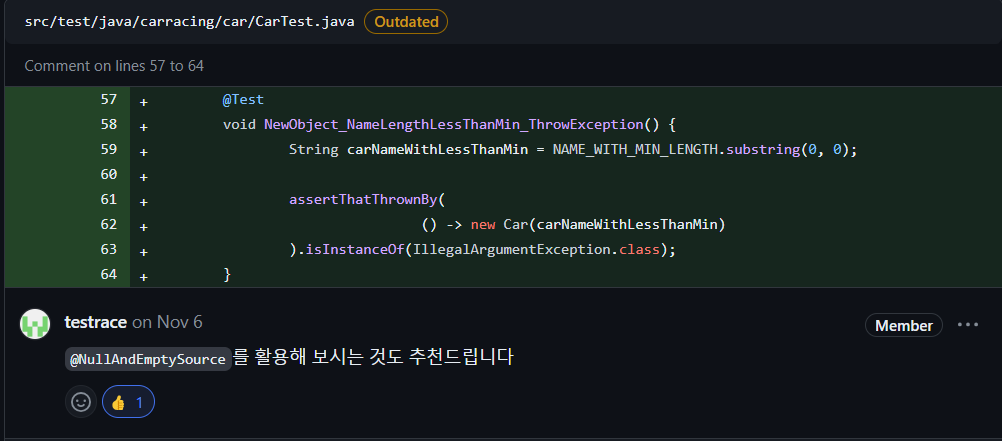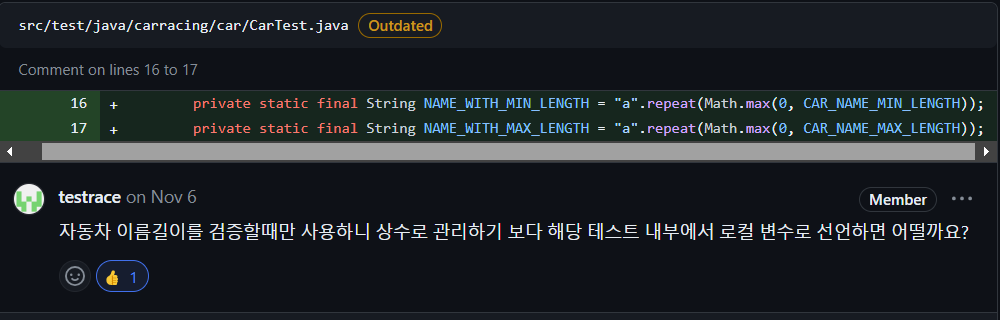자동차 이름 길이 검증은 다수 혹은 모든 테스트에서 사용 하는 것이 아니므로 테스트 내부로 옮기는 편이 낫습니다.