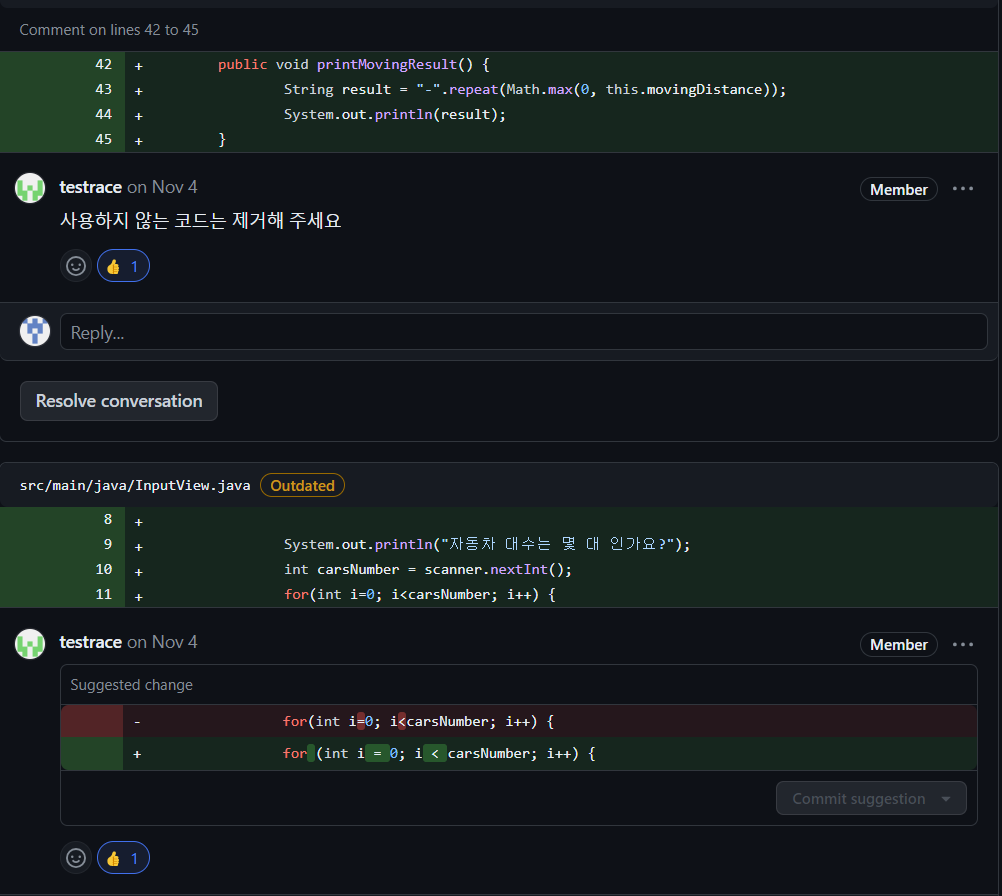 문자열 계산기와 자동차 경주 과제 구현 및 피드백을 회고한다.