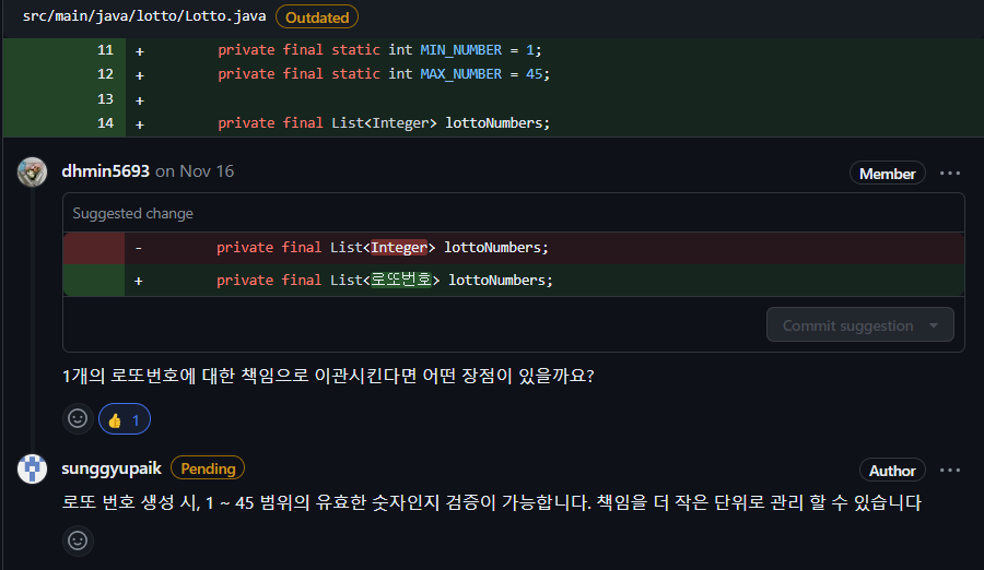 로또 번호 스스로 책임을 관리하는 객체로 분리하라