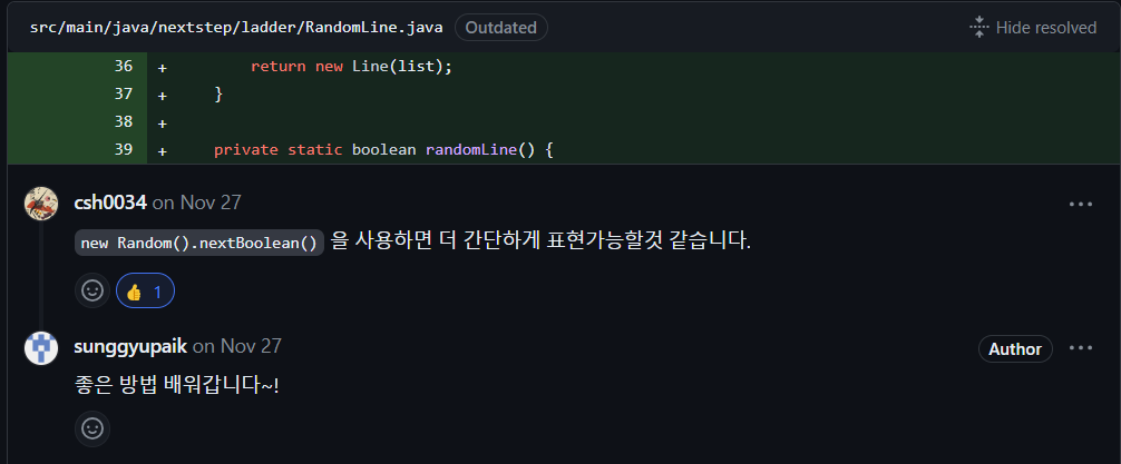사다리타기 과제를 구현하면 피드백 받은 내용을 정리합니다.