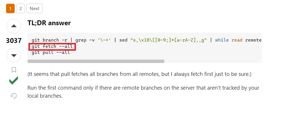 git pull에는 git fetch와 git merge가 합쳐져 있으므로 아래 글의 빨간박스 git fetch --all 부분은 삭제합니다.