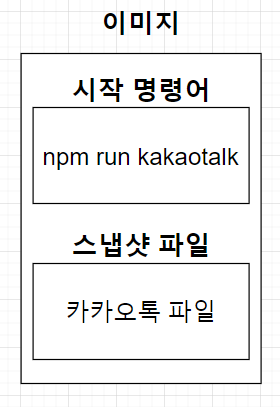docker create: 도커 컨테이너를 생성합니다. 커널, 하드웨어 및 필수 자원들을 포함하여 스냅샷 파일(카카오톡 파일)을 하드 디스크에 저장합니다.