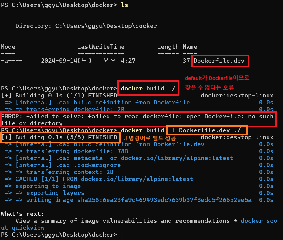 -f <도커파일 이름>: 기본은 Dockerfile이며 그 이외 다른 도커파일을 빌드할 때 사용합니다.