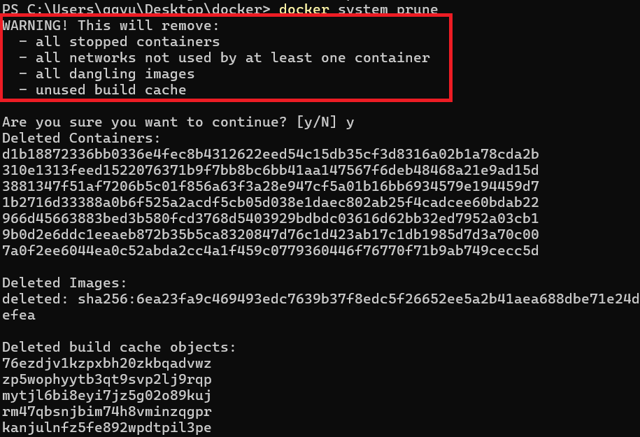 사용하지 않는 도커 오브젝트를 정리하여 메모리를 확보할 수 있습니다.