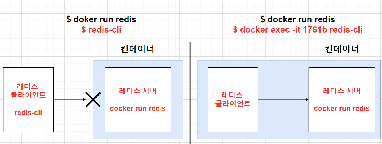 docker exec -it <컨테이너> redis-cli vs docker run redis