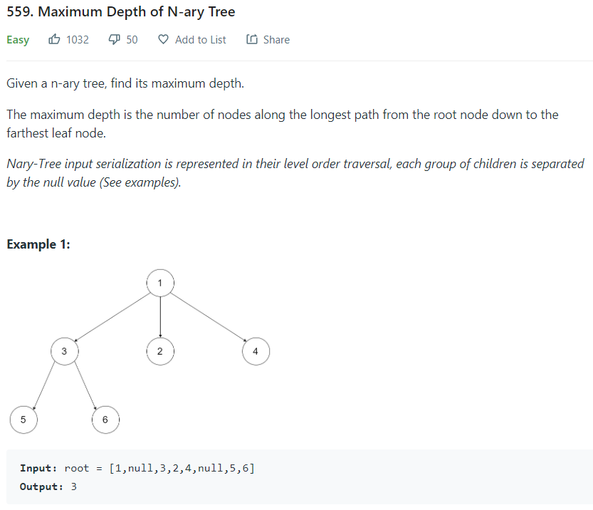 559 : Maximum Depth of N-ary Tree ( leetcode / java )